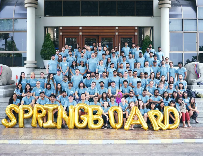 Since our founding in 2013, we’ve doubled our team size each year, with offices in Bengaluru and San Francisco. Today, the Springboard community includes tens of thousands of students and alumni, more than a thousand expert mentors, dozens of career coaches, and hundreds of employer partners. Together, we’re building a network that’s bridging the world’s skills gap.